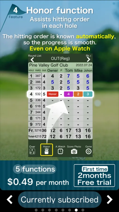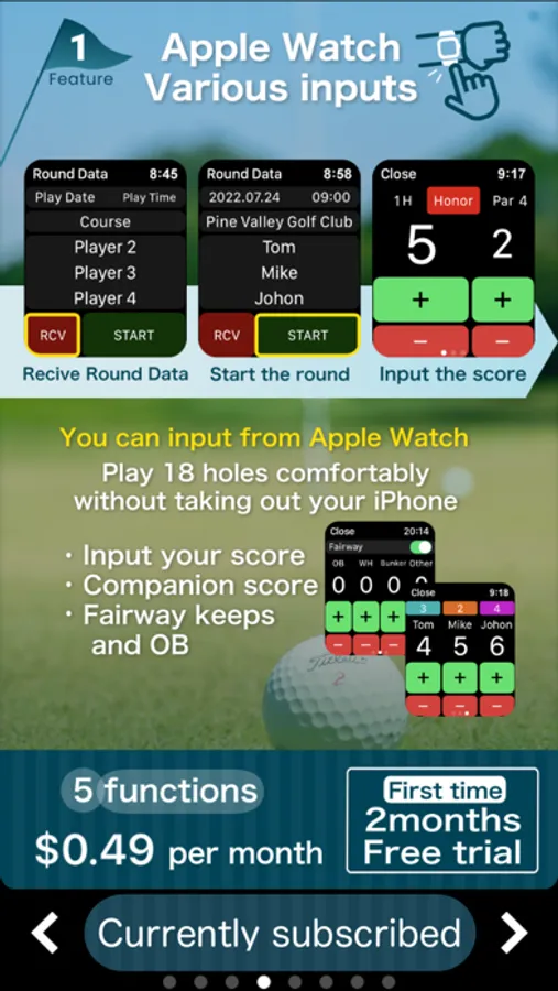The batting order of the next hole is displayed on the screen (both iPhone / Apple Watch)