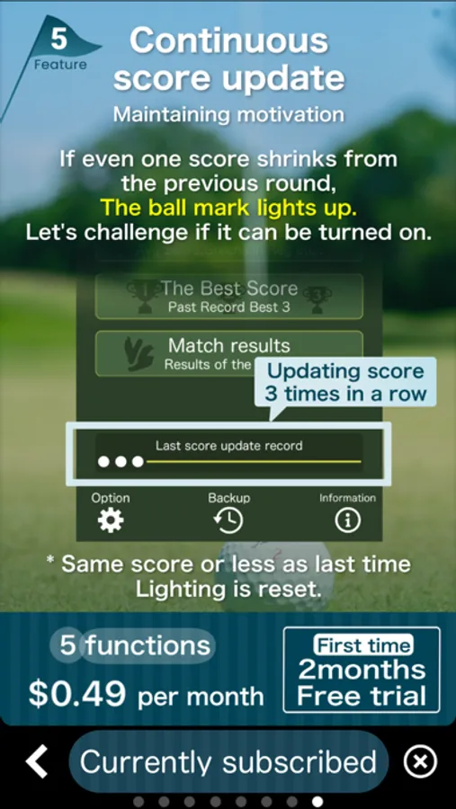 If the score is good (less) even with one stroke compared to the previous round, one ball mark will light up on the home screen.