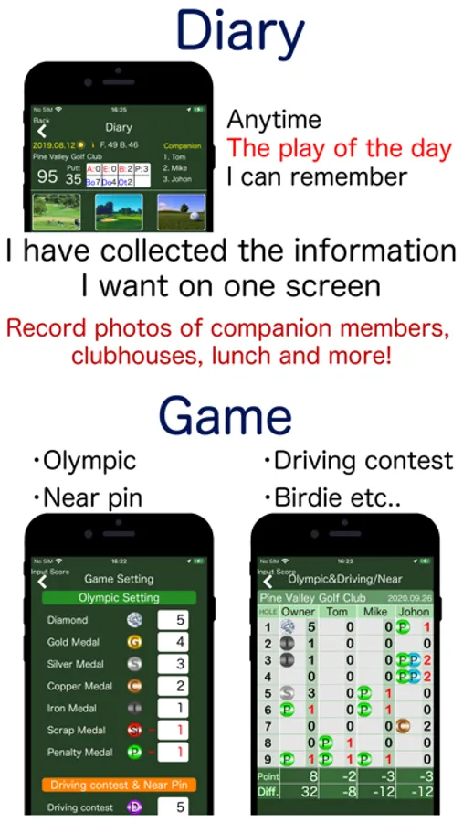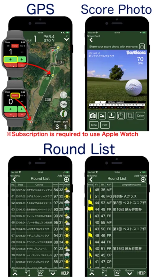 ■ Golf diary (You can leave memories such as score details, photos, hole records, etc.)