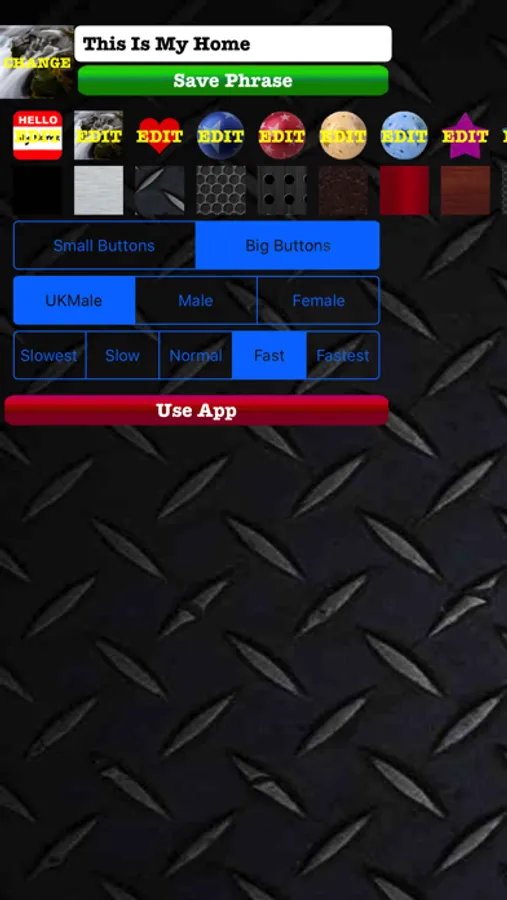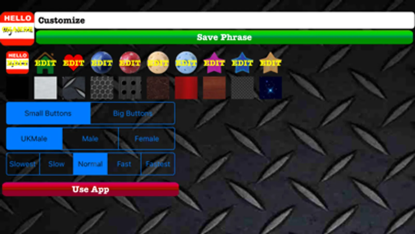 - Custom TTS phrases can be assigned to the Top Row of buttons.