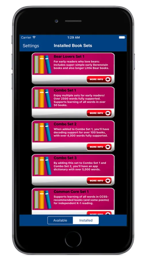 • When new Book Sets and new words are available for the app, they can be downloaded for free from within the app.