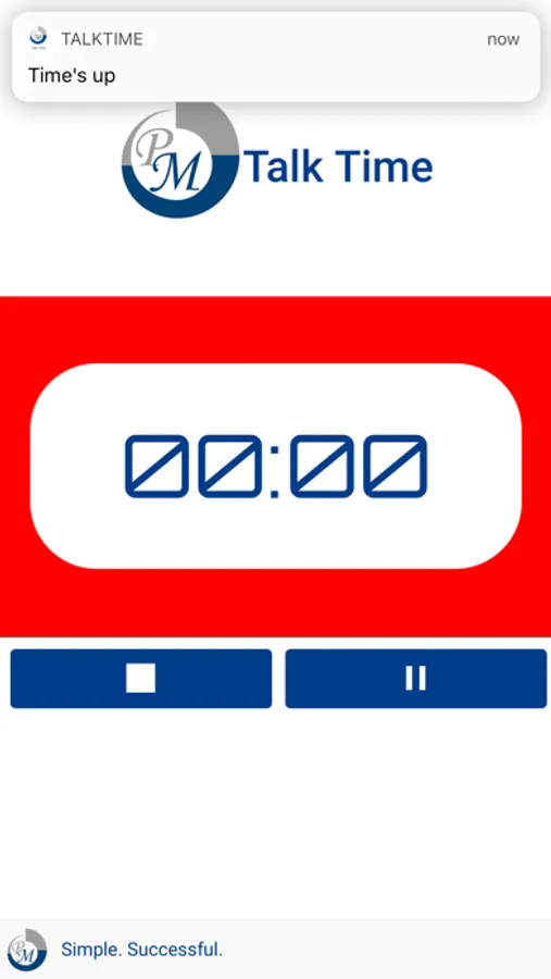 At the end of the time the colour is changing and a sound appear. The time is running on and so you can see how much you are over the planned time.