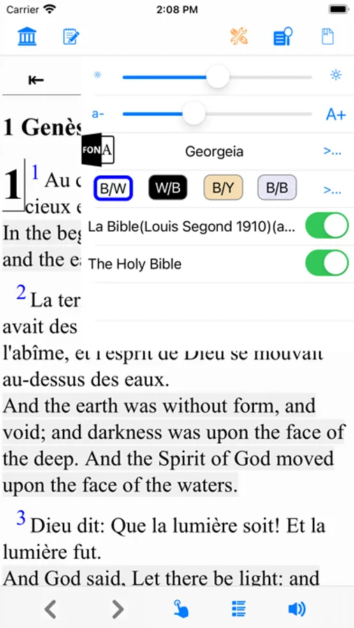 * Remembers the last reading location (exact book, chapter and scroll position)