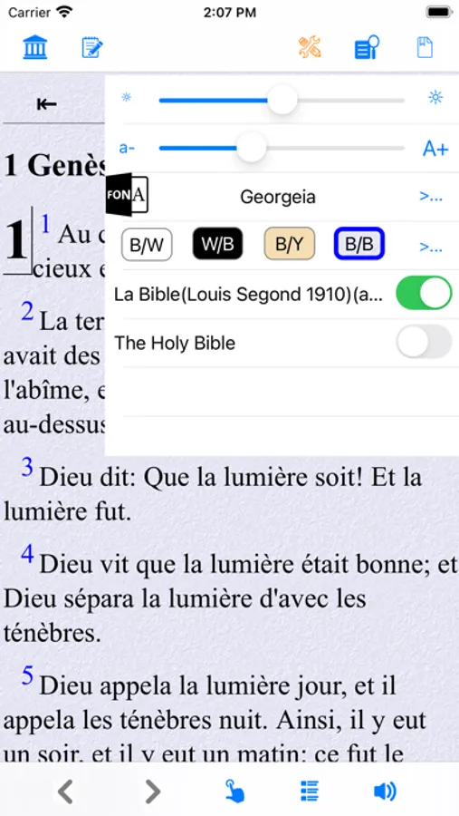 Multiple audio play modes and text scroll option for easy reading and listening the words of the God.