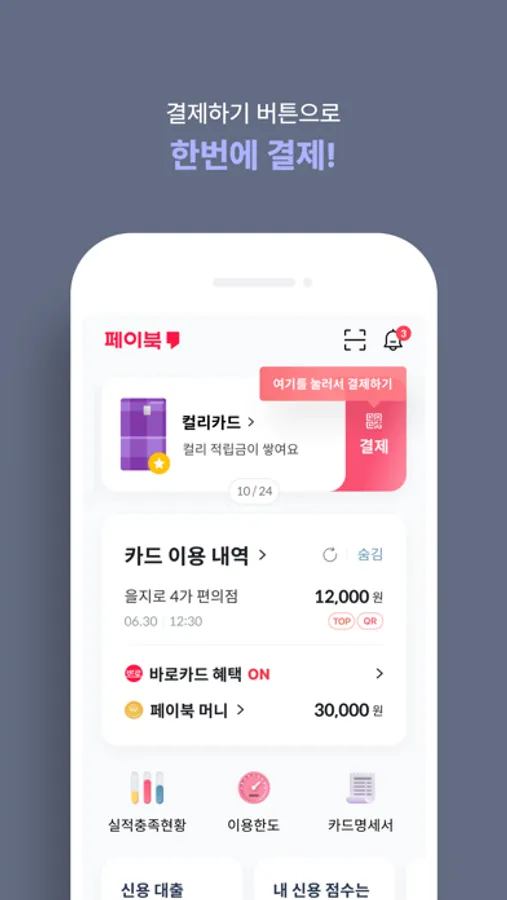 **페이북 앱 하나로 BC카드와 KB국민계열 카드를 함께 이용할 수 있습니다.