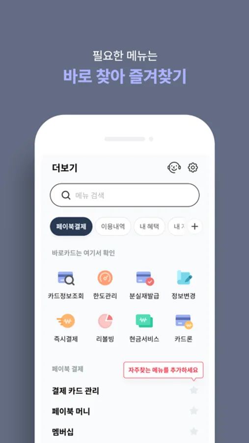 - 페이북의 다양한 서비스를 확인하고 원하는 기능을 검색해 보세요