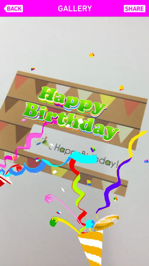 ARマーカーや指定の画像をiPhoneのカメラを通して見ると、現実空間に仮想コンテンツが現れます。