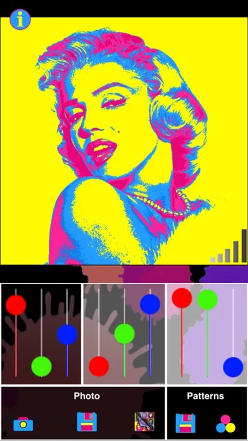 PopArt FX is a Pop Art app that lets you create color patterns, save them, and apply them whenever you want on your pictures, photos, and photo camera !