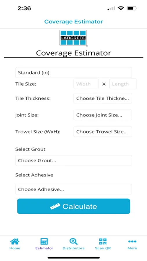 Coverage Calculator: Get quick coverage estimates for all LATICRETE grout and adhesive products by entering your desired product, tile size, grout joint width and trowel size in English or Metric units!