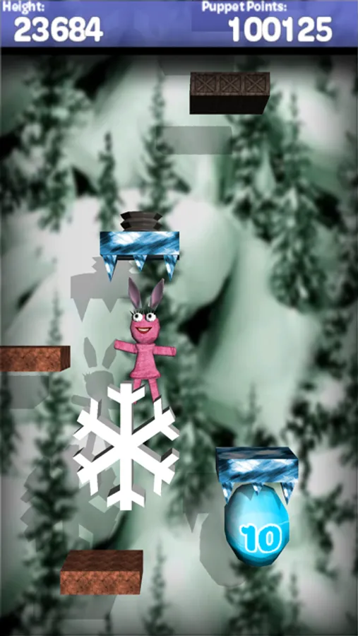 Jump ever higher on platforms while collecting Puppet Points which can be used to customize your puppet and surroundings. As you get higher you'll encounter moving and breakable platforms to test your leaping skills.