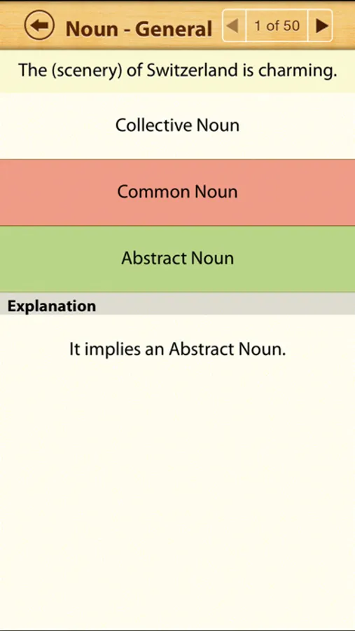 Grammar Express: Nouns is the complete course in mastering the kinds of noun such as common noun, proper noun, collective noun, material noun and abstract noun. It contains over 48 pages of lessons explaining Noun-Number, Gender and Case with several examples. You can learn the grammar rules, study the examples and test their understanding by taking quiz. At the end of quiz the user is presented with test summery and explanation for each test question. Grammar Express can help you to improve your understanding of kinds of noun and their classification into concrete and abstract noun. Custom timer setting can assist you to improve response times under exam time constraints. Research suggest that kids and adults learn most quickly when playing learning games with real-time error-feedback. Grammar Express provides learners with an opportunity to improve strategies for grammar success.