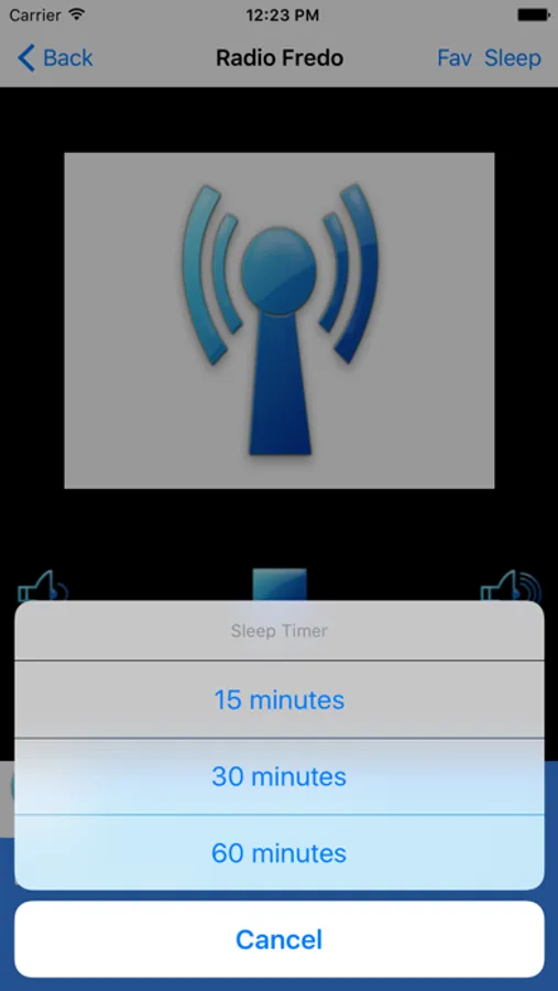 A sleep timer can be used to limit the music to 15, 30, or 60 minutes.