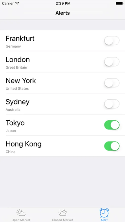 In addition, you can also choose to receive notifications/alerts when your favourite market open and closed.