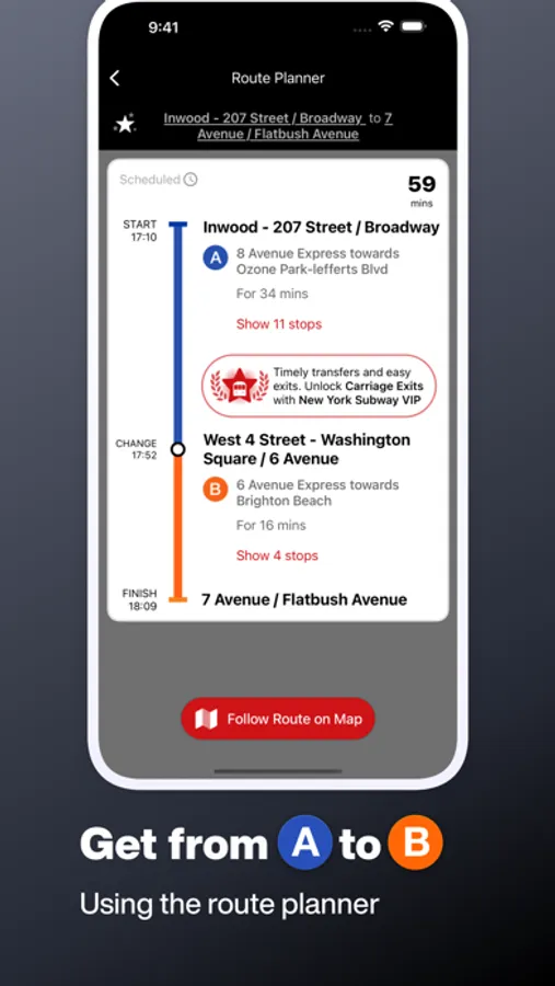 Easy-to-use transit route planner to get you from A to B on the subway.