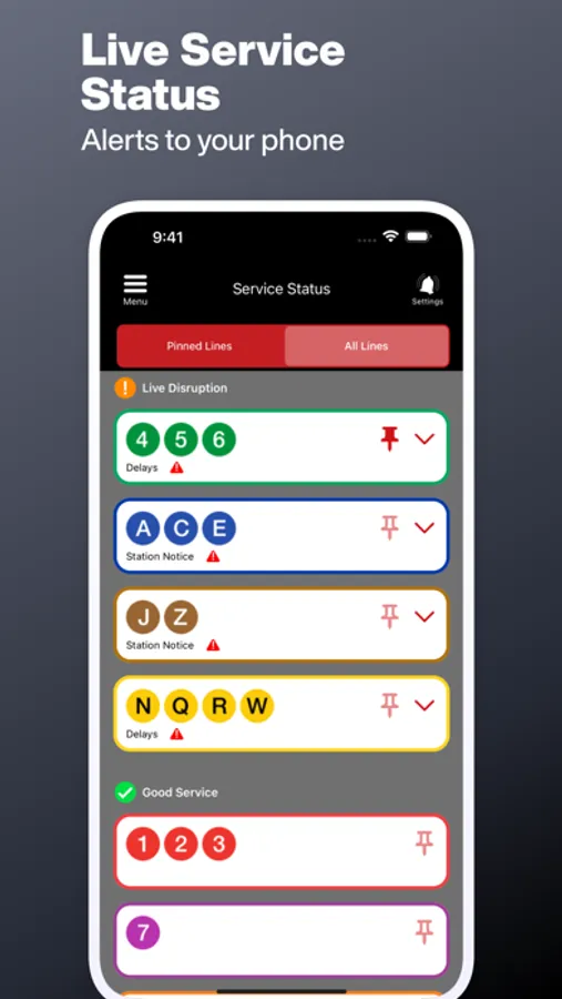 Service Status from MTA shows live information about delays with alerts sent straight to your phone.*