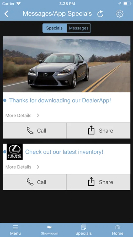In addition, all the standard MLink App features are also here like: Call and email each department, get directions, view operating hours, get quotes on vehicles, order parts, etc etc…
