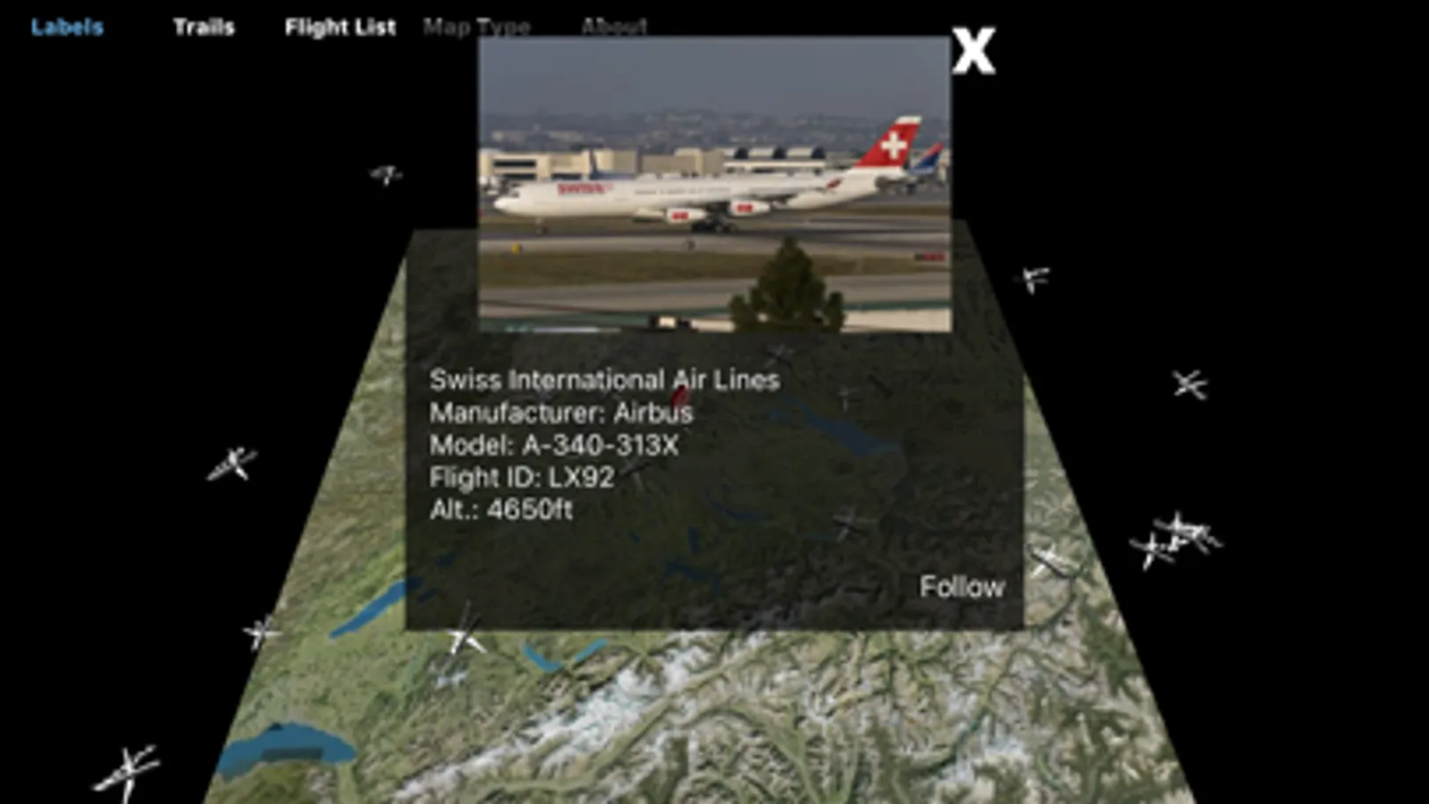 This app shows the current airtraffic over Zurich/Switzerland in a 3D view. You can pan/zoom/fly around, get the details about each airplane (if available).