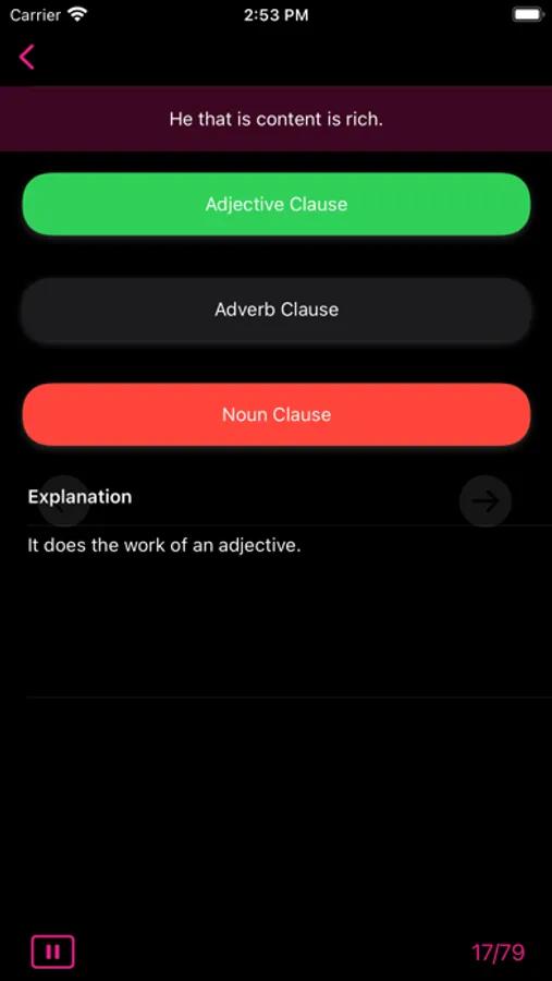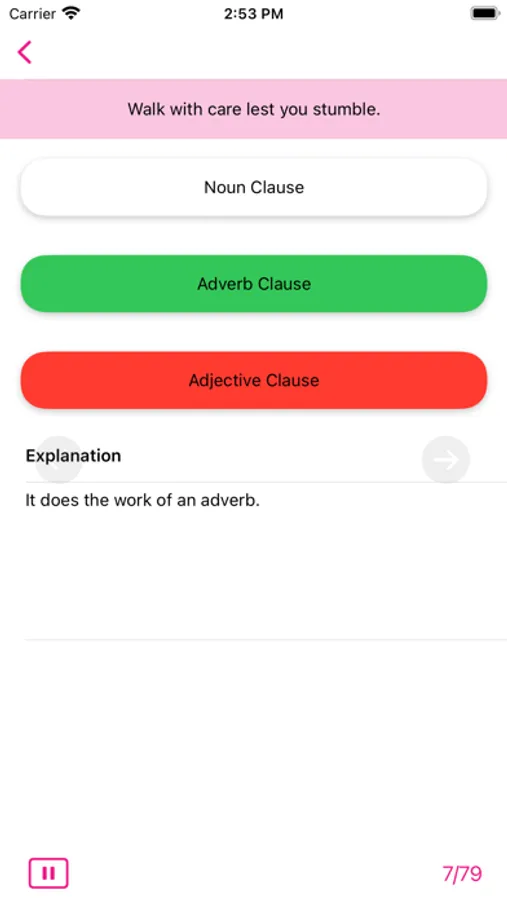 Grammar Express: Clause Analysis is the complete course in mastering the art of breaking up simple or complex or compound sentences into their different components for better understanding. It contains over 8 pages of lessons explaining various rules for analyzing different kinds of clauses with several examples. You can learn the grammar rules, study the examples and test their understanding by taking quiz. At the end of quiz the user is presented with test summery and explanation for each test question. Grammar Express can help you to improve your understanding of how to identify clause whether it is adjective clause or adverb clause or a noun clause. Custom timer setting can assist you to improve response times under exam time constraints. Research suggest that kids and adults learn most quickly when playing learning games with real-time error-feedback. Grammar Express provides learners with an opportunity to improve strategies for grammar success.