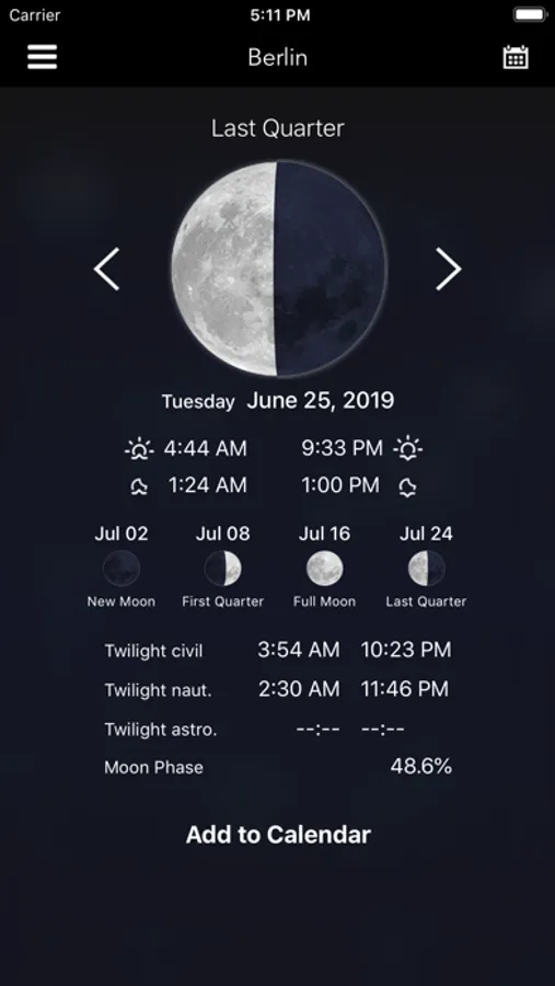 GPS Astro is a utility for the iPhone, iPad and iPod Touch that calculates predicted sunrise, sunset, moonrise, moonset times, moon phases as well as civil, nautical and astronomical twilight depending on your current GPS location or for a selected location.