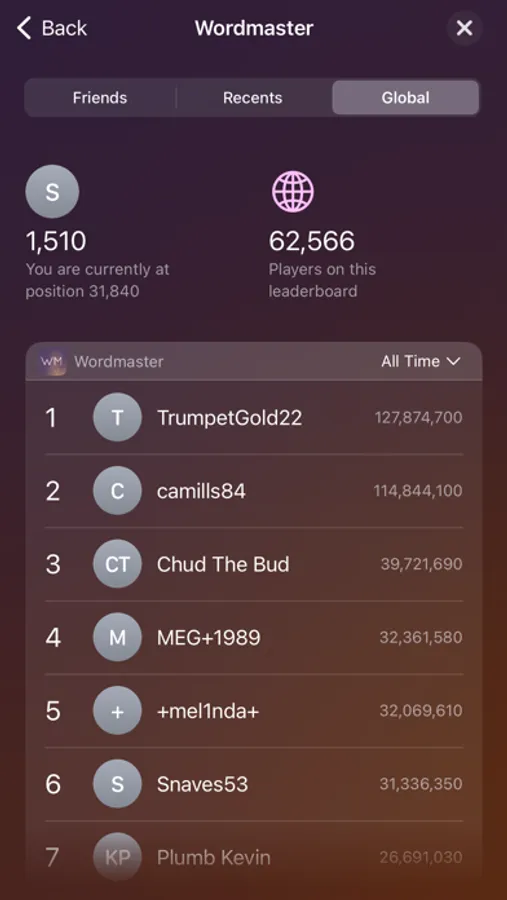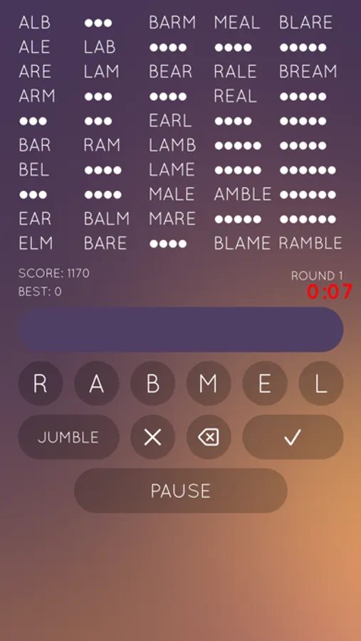 Game Center integration lets you compete with other players and your friends, vie for the top spot on the Wordmaster leaderboards, and share high scores to Facebook, Twitter, Mail or Messages.