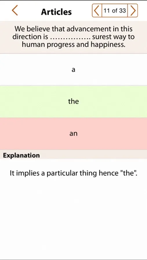 Grammar Express: Articles is the complete course in mastering the use of correct articles in writing English. It contains over 14 pages of lessons explaining each article with several examples. You can learn the grammar rules, study the examples and test their understanding by taking quiz. At the end of quiz the user is presented with test summery and explanation for each test question. Grammar Express can help you to improve your understanding of Articles and how to use them correctly in writing English. Custom timer setting can assist you to improve response times under exam time constraints. Research suggest that kids and adults learn most quickly when playing learning games with real-time error-feedback. Grammar Express provides learners with an opportunity to improve strategies for grammar success.
