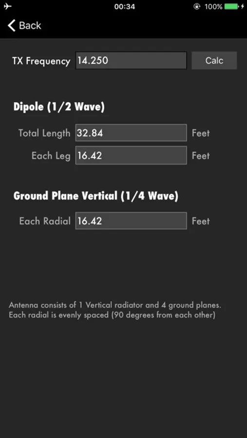 An essential part of this app is the antenna calculator. If you need to make an antenna in a hurry, simple type in the desired TX frequency and at a click of a button antenna designs for Dipole and Vertical antennas are displayed.