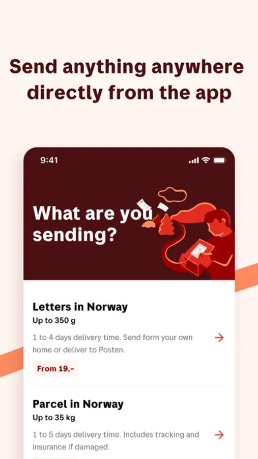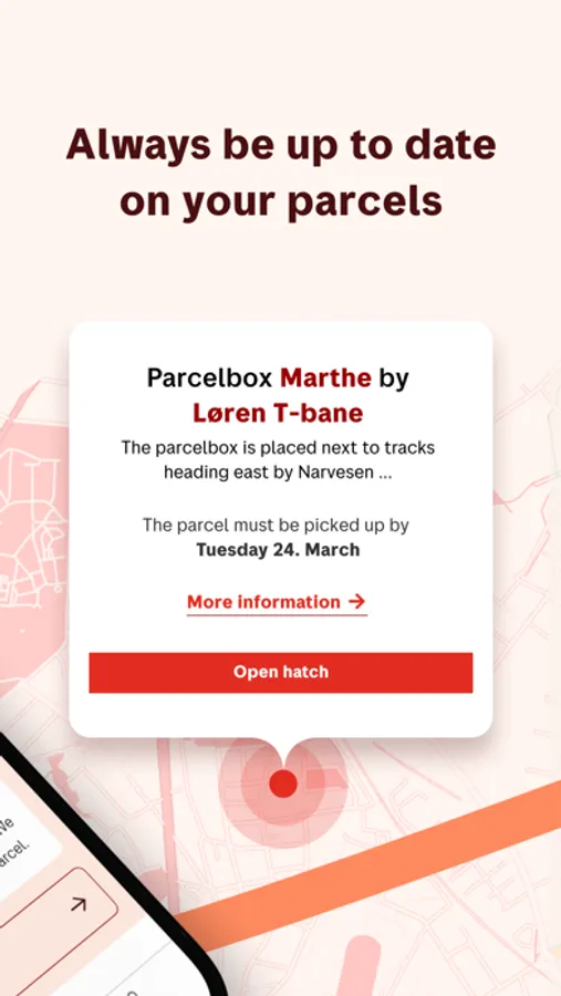 The Posten app makes it easy to track, order home delivery and pick up your packages. You can also send packages in the app, and pick up packages in pakkeboks.