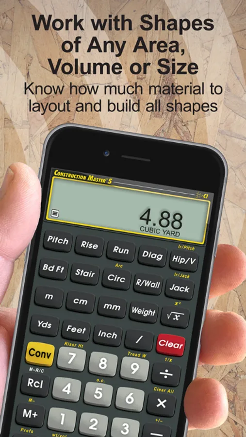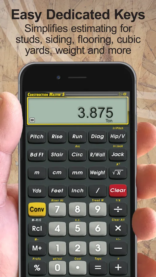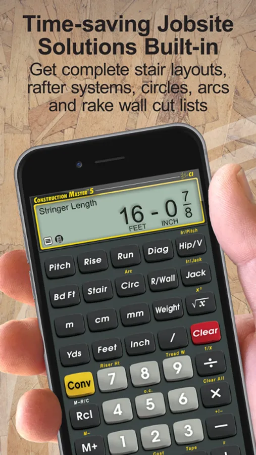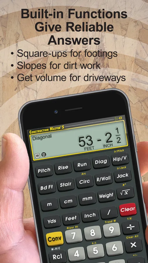Built with the same core engine that powers the industry-standard advanced construction-math handheld calculators from Calculated Industries.