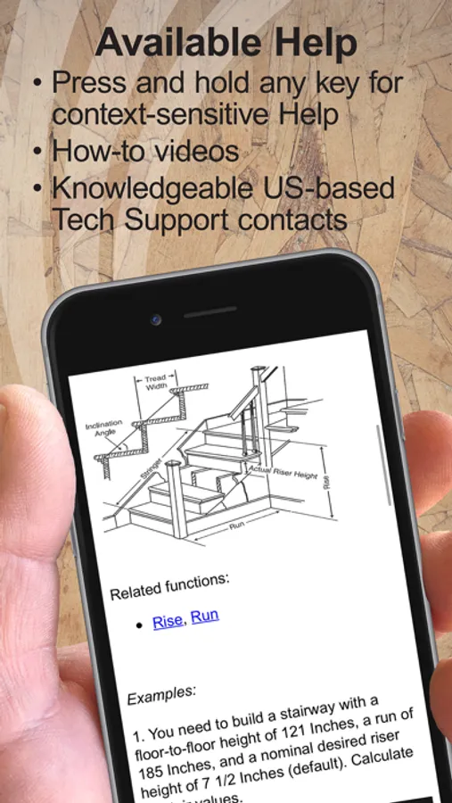 It operates exactly as the handheld Construction Master 5, along with added app-exclusive features. It includes a full User’s Guide built-in, as well as the ability to press and hold a key for specific help! Even includes tutorial videos.