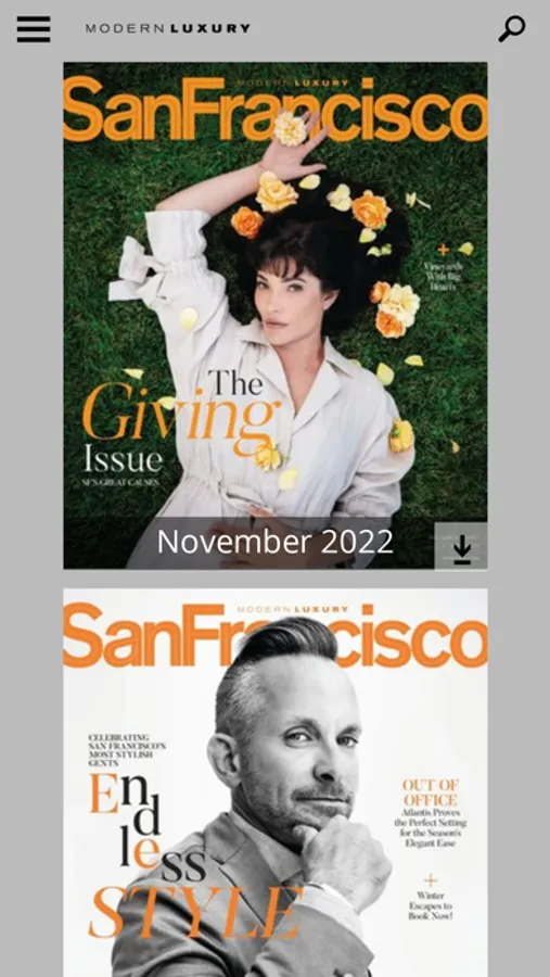 Download the absolute modern authority on San Francisco today. San Francisco is the magazine for the discriminating reader and one of the first city-regionals available in app format. Be among the first to read this award winning content on your iPhone and iPad. Whether it's a revealing celebrity profile, a special feature on the chicest trends in design, cutting-edge fashion spreads or an in-depth review of The Bay Area’s hot spots, San Francisco consistently engages the influential and affluent interested in this great metropolis.