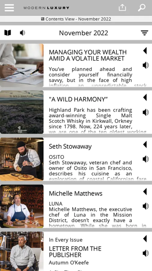 The San Francisco magazine app offers a mini escape in your hands with award winning editorial debating the hot topics of the day, local dining, culture, home design, and travel. You will be notified of new issues each and every month. With interactive page flipping, a zoom feature, bookmarking, searching and sharing your favorite articles allow an enhanced magazine experience right anywhere and anytime you choose to read.