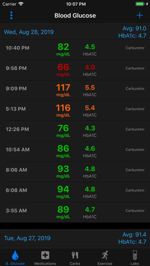 Carburetor™ continues the evolution of diabetes management by tracking glucose readings, medication dosages, carbohydrate consumption, exercise & HbA1c & lab results. While there are other diabetes apps with similar functionality, Carburetor™ is the fastest, easiest & safest. It only takes a few touches to enter a blood glucose reading & a few more to enter medications or carbohydrates. Carburetor™ was designed to focus on stream-lining the user experience & avoid flipping through endless menus.