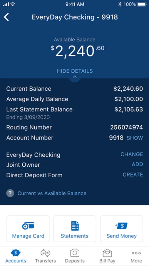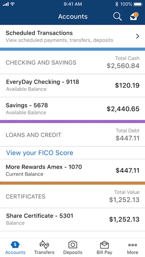 • View scheduled transactions, including pending deposits, upcoming transfers, and bill payments.