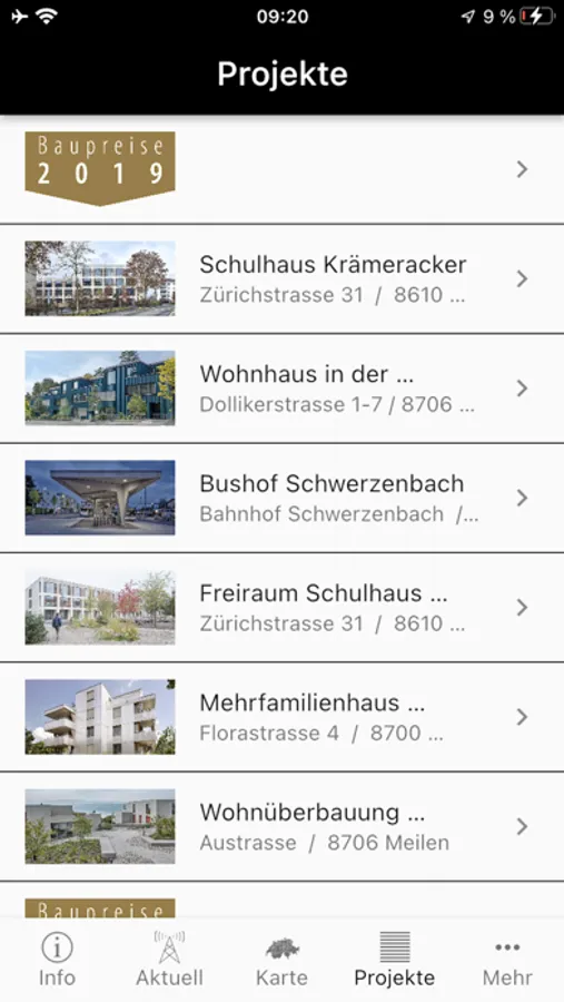 - Eine Auflistung aller mit dem Baupreis prämierten Projekte des AFZO.