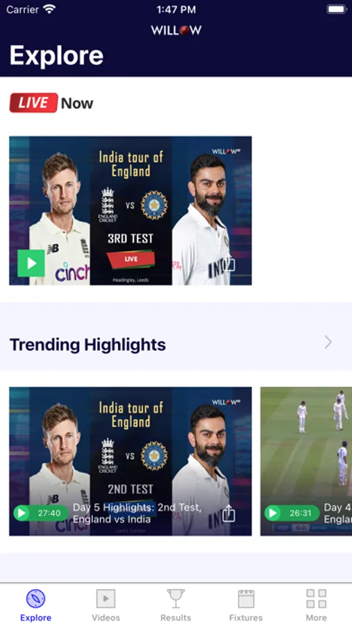 - Willow Premium Subscription gives you access to Live Streaming, Highlights & Replays in HD