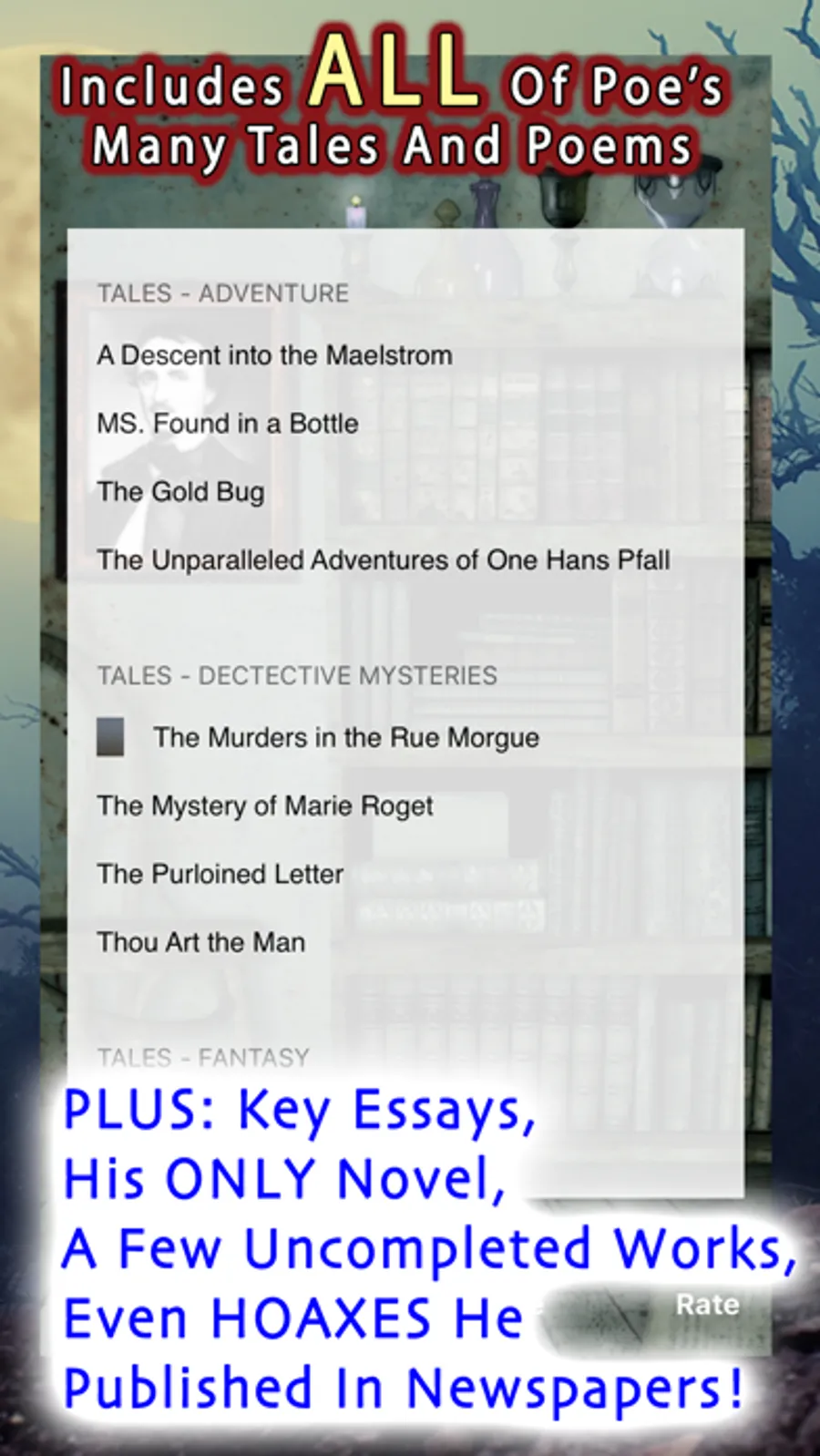 * PLUS: Key ESSAYS, his ONLY NOVEL, a few UNCOMPLETED WORKS, even HOAXES he published in newspapers.