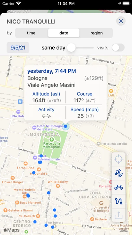 PlaceTrack is a modern, cross-platform, full-featured location journaling and sharing app, available for iPhone, Apple Watch, and other platforms, and also offering compatibility with Car Play. It keeps a history of your locations 24/7 with almost no impact on battery life, capturing data on speed, course, altitude, and user activity. Additionally, its optional sharing features allow you to track your loved ones, monitor their travelling speed, get directions to their current location, and view street-level images of any place they are or they have been. You can also overlay and compare your location or your contacts' locations against a GPX track. This can be imported from files, Strava, or Apple Watch workout routes, as the app integrates seamlessly with HealthKit.