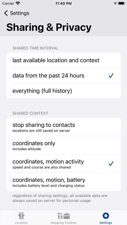 - optionally share your recent location or location history with authorized PlaceTrack contacts