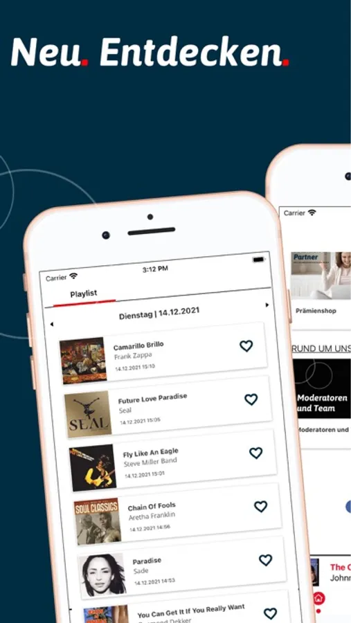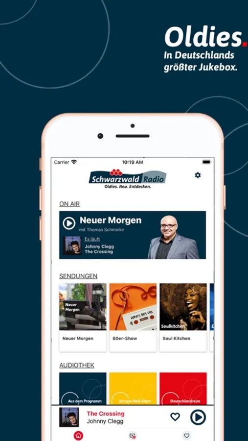 Erfahren Sie alles über unsere musikalischen Sondersendungen von den Discoclassics, der Soul Kitchen bis hin zur Zeitmaschine und schicken Sie uns Ihre Musikwünsche ins Jukebox-Studio. Sie möchten mehr über unsere Moderatoren wissen? Auch das bietet die App! Genau wie alle gespielten Titel der letzten 7 Tage. Markieren Sie einfach Ihre Lieblingssongs für Ihre persönliche Playlist.