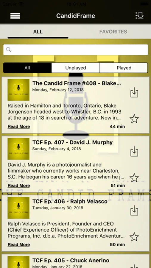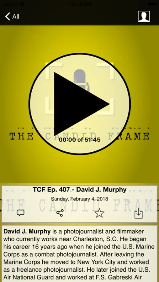 The Candid Frame photography podcast on your iPhone, iPad or iPod Touch. Interviews with some of the world's best photographers are easily available to you. Just touch and play!
