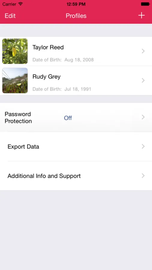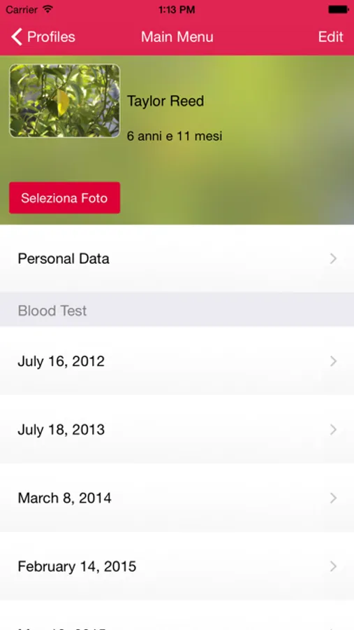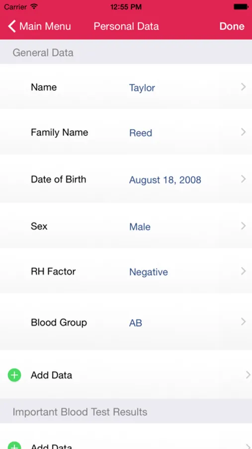 In a dedicated section, you can also store additional information such as bool group, rh factor, negative/positive results to specific desease such as mononucleosis, toxoplasomosis, ....