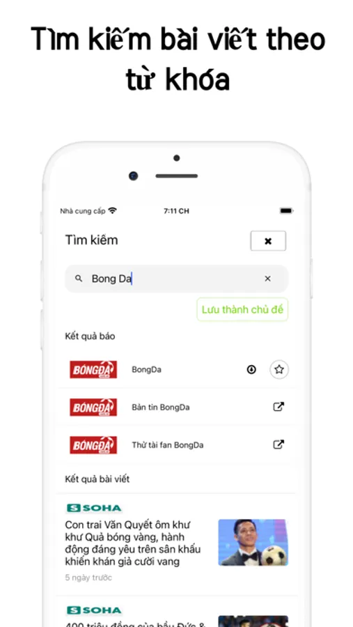 Đọc tin tức theo chủ đề báo, lưu các bài báo yêu thích của bạn để đọc sau.