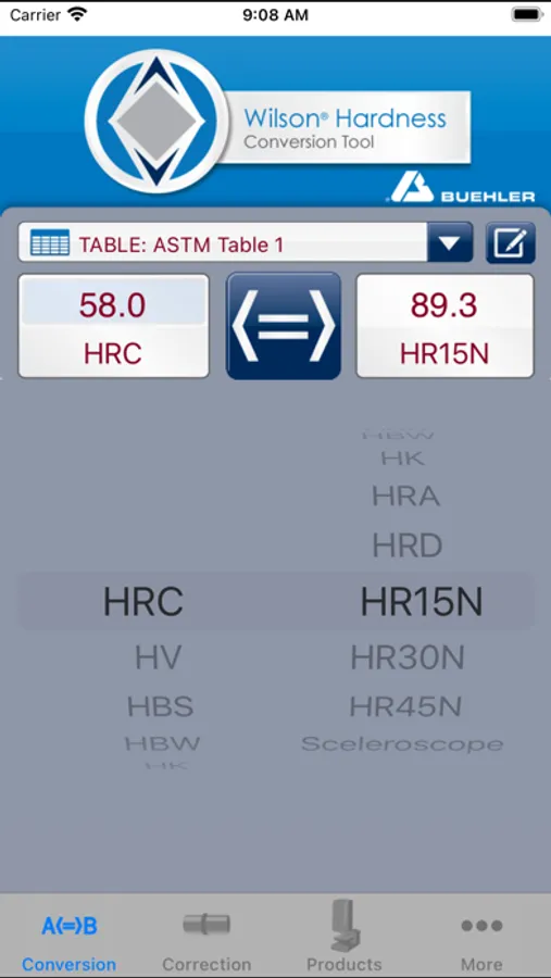 The Wilson Hardness Converter is a simple tool for converting between popular scales used to measure the hardness of metallic materials.