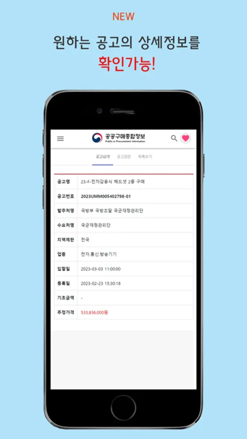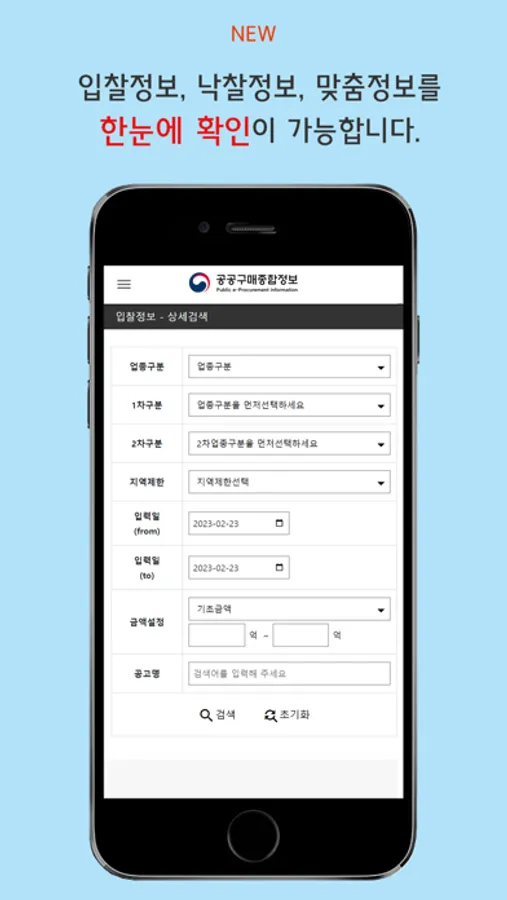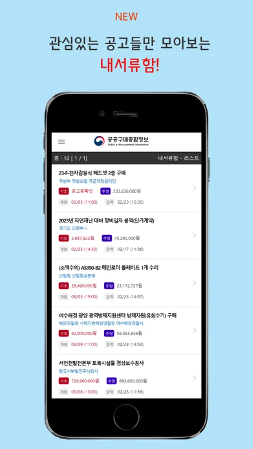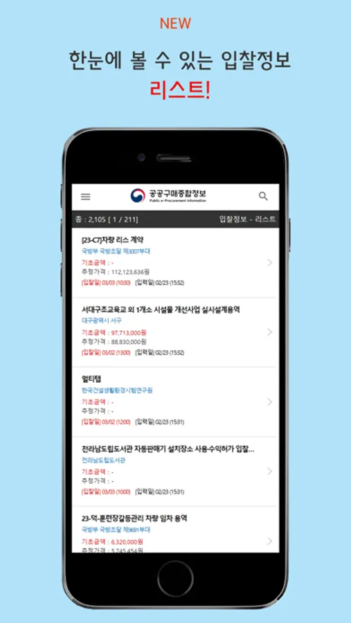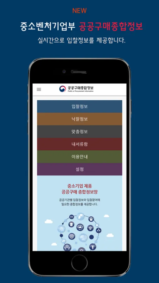 중소벤처기업부에서 중소기업을 대상으로 무료 배포하는 입찰정보 앱입니다.