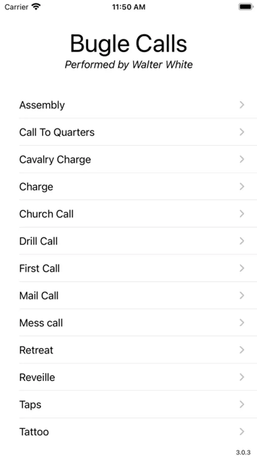 The bugle has been used for centuries to signal the day's events. Now you can add bugle signals to your own day, from Reveille to Taps. iBugler plays high-quality recordings performed by Walter White, a Yamaha Performing Artist who serves as lead trumpeter for Dave Matthew’s Manhattan Jazz Orchestra. (You can hear Walter play "Charge" at our web site.) Calls include Reveille, Taps, Charge, Mail Call, Retreat, Tattoo and more. Open a meeting with Assembly. Call your family to dinner with Mess Call. When you don't have a live bugler on hand, it's iBugler to the rescue.