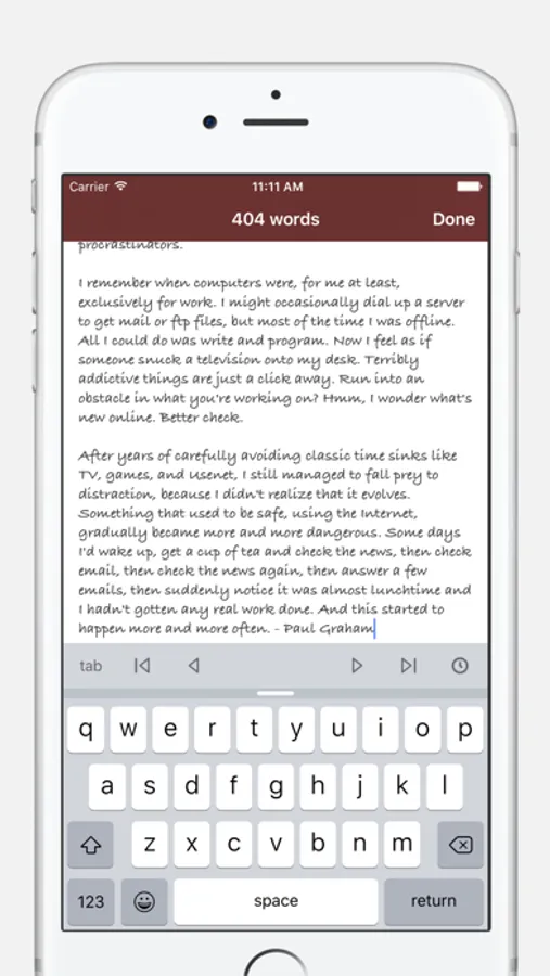 Start writing more, today. Reliable storage, autosave, and passcode lock protect your words; share or read them on your computer with PDF, text, and email export. You can also create backups and save them to other apps such as Dropbox, Drive, and Evernote.