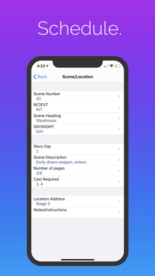 Instead of relying on a physical production office to schedule your production, with Pocket Call Sheet you can do it on the road, distributing to your cast and crew all the requirements for the following day. Your Line Producer, UPM, 1st and 2nd AD’s can even sign off on the call sheet from their device.