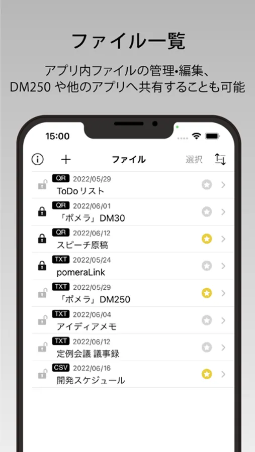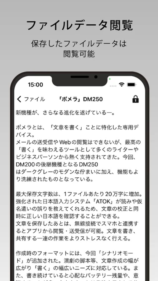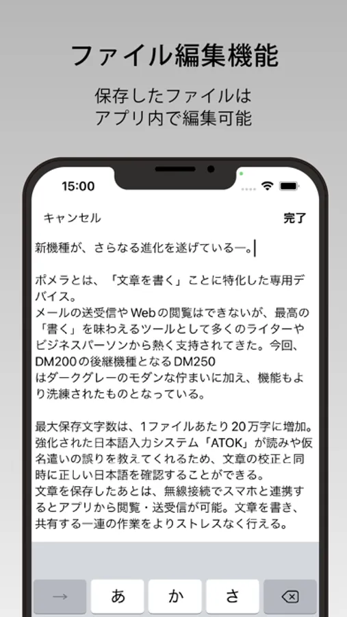 Text data created with Pomera can be saved in the app using "QR Code" or "Wi-Fi Connection".