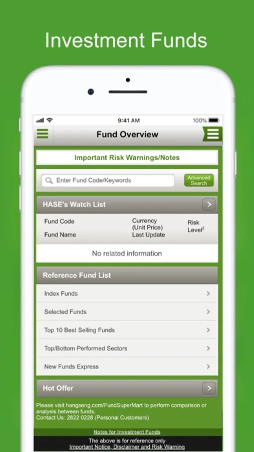 Up-to-date market information and latest market outlook are requisite for you to make the best investment decision. Hang Seng’s Market Info App with enhanced functions helps you to seize each investment opportunities. Download Now to experience our comprehensive market info app!