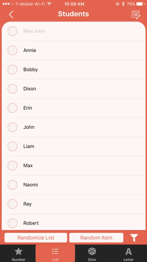 * Items from a list are not picked again until all items have been chosen once. Chosen items can be reset from the list info screen.